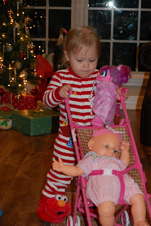 Abby loving her new baby, stroller and Abby CaDabby baby